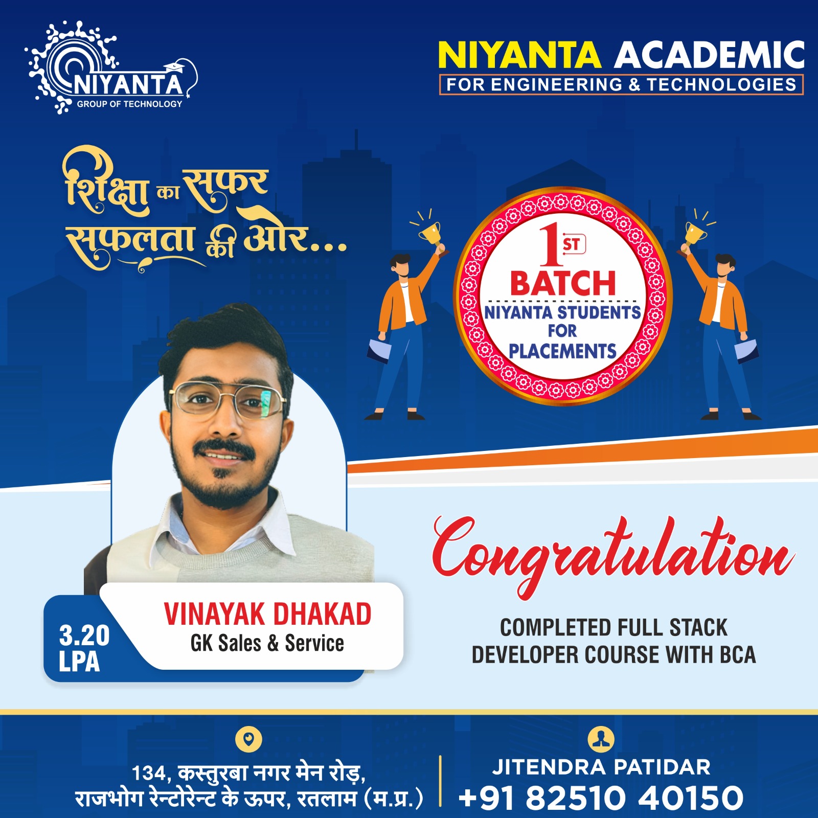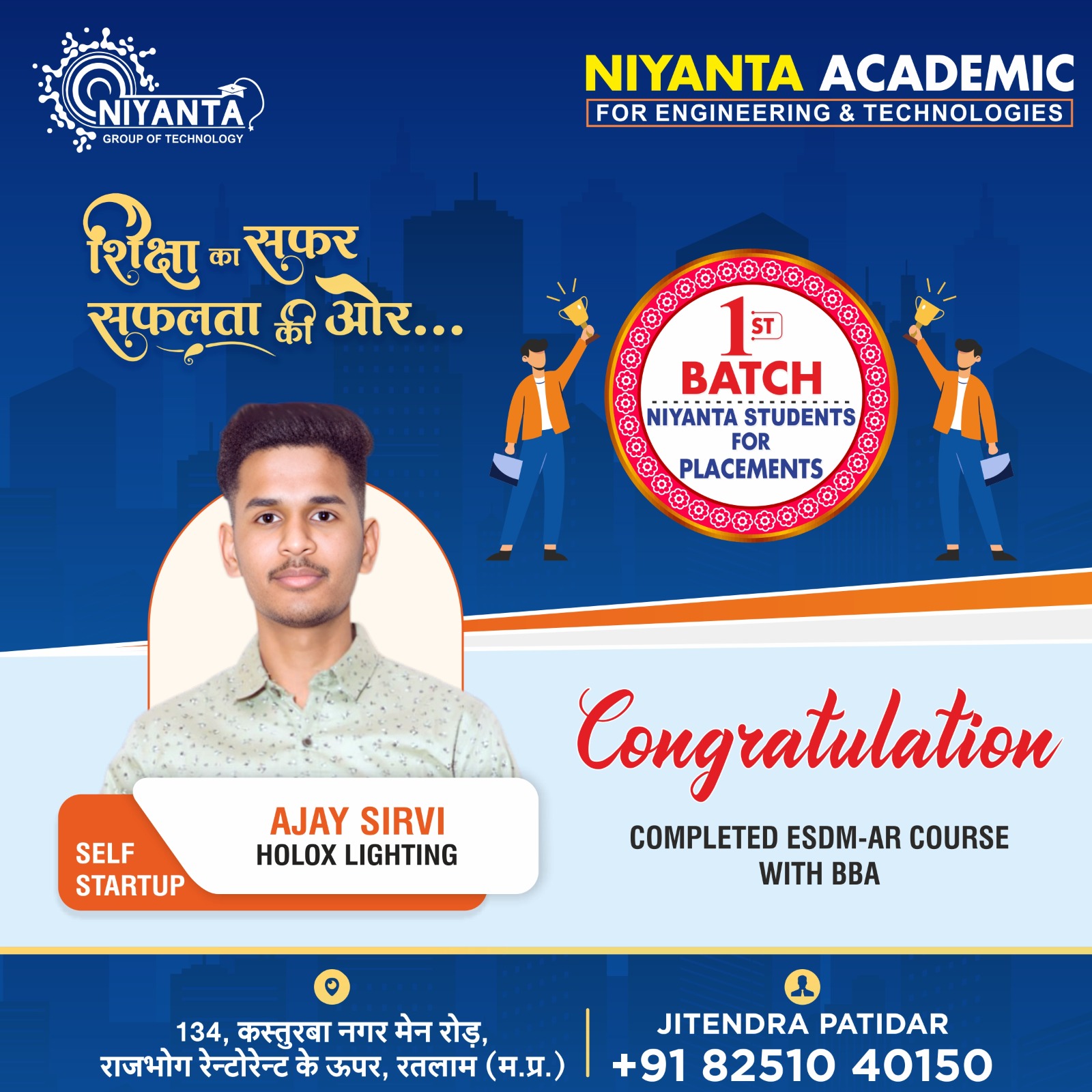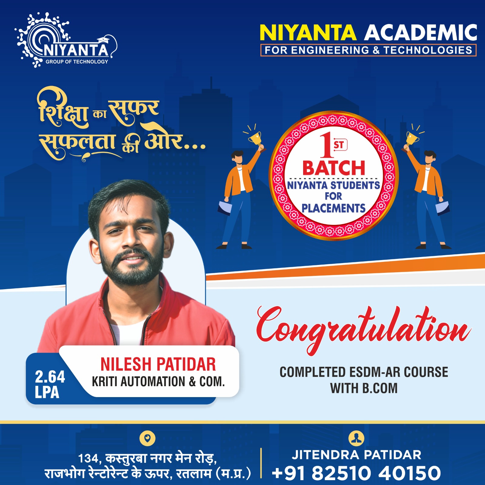 134 kasturba Nagar Main Road ,Above Rajbhog Restorent Ratlam MP